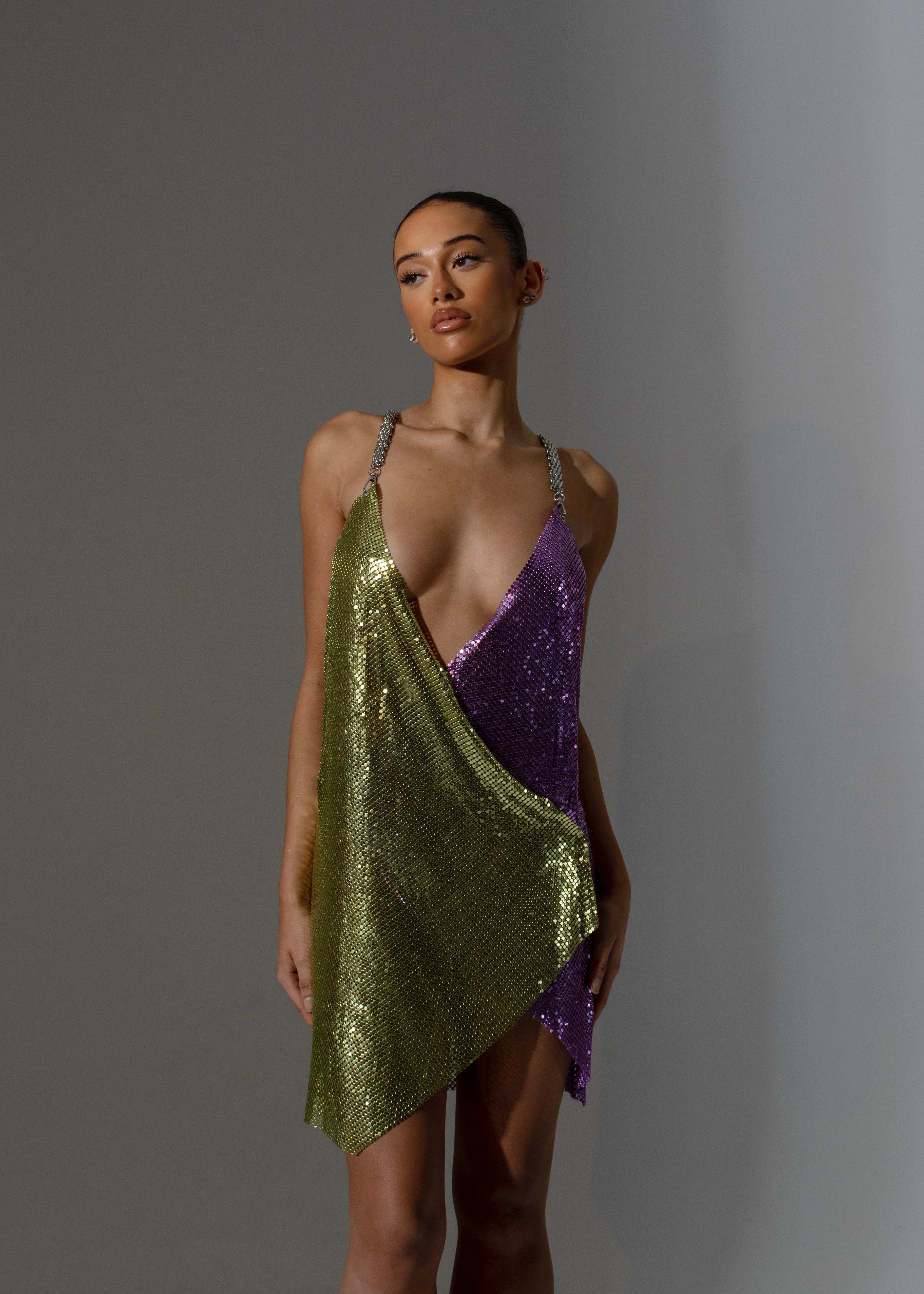 Our LOLA Chainmail Dress is oh-so alluring, catching everyone's gaze and definitely holding them as you walk by. Featuring a two tone chainmail material and a provocative backless moment, you will be able to show off some luscious skin with high level taste