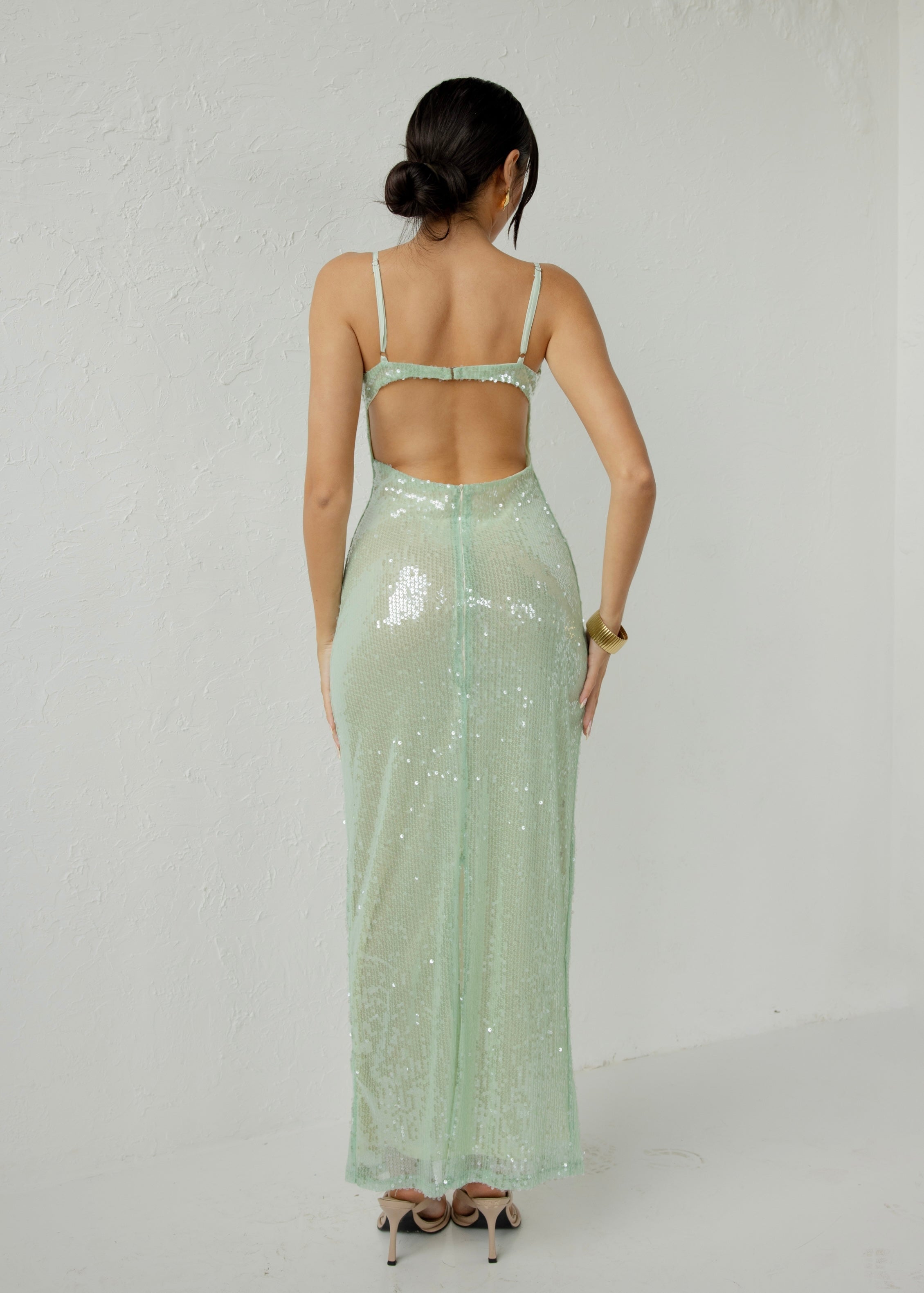 Make them stop and stare in this sequin bodycon maxi dress. Brought to you in a green material with sequin detailing for that extra touch of luxe, how can you resist? Style this dress with statement accessories, for a look that is sure to make you stand out from the crowd for all the right reasons.